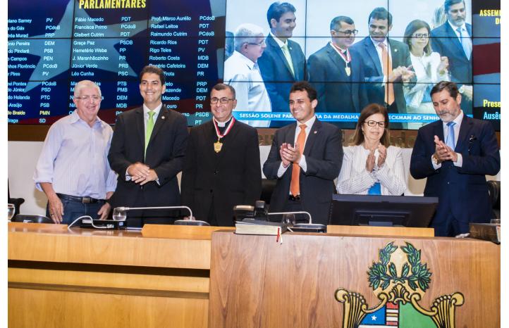 Emocionante. Essa é a palavra que define a solenidade realizada na Assembleia Legislativa do Maranhão, na manhã/tarde desta quarta-feira(10) para a entrega da medalha “Manuel Beckman” ao padre Cláudio Sousa Fernandes, pároco da Paróquia Nossa Senhora da Conceição, no bairro do Monte Castelo, na capital maranhense.