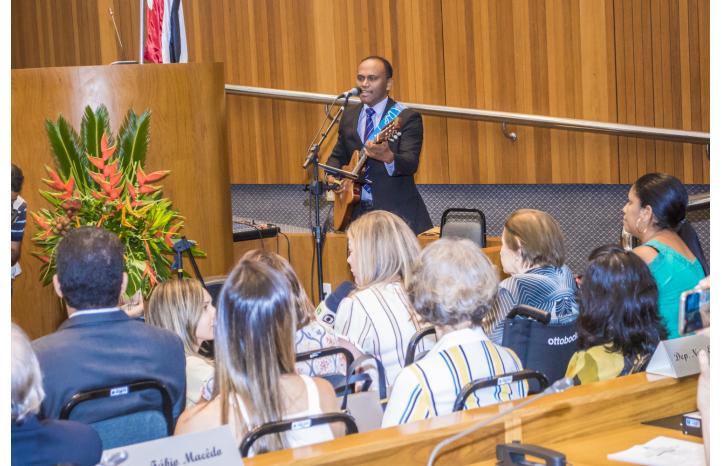 “É uma emoção muito grande ver, de fato, tantas pessoas que não imaginei que pudessem estar aqui devido ao horário e até do dia, mas saíram das suas casas e dos seus trabalhos e vieram fazer esse momento de partilha e de poder conviver comigo um momento tão especial. Então a minha mais profunda gratidão”, discursou Padre Claudio após receber a condecoração das mãos do deputado Braide.
